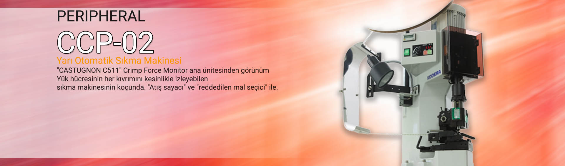 Çok çekirdekli bir kablo gibi kesilmiş bir elektrik kablosuna su geçirmez bir conta taktıktan sonra doğru bir şekilde sıyırma işlemini gerçekleştiren yüksek performanslı bir makinedir. Casstagnon serisinde köklü bir üne sahip olan ve hızlı ve istikrarlı bir su geçirmez kauçuk tedariki vaat eden DF-01 disk besleyici ile donatılmıştır. Yarı otomatik el presi "CCP-02" ile birlikte kullanıldığında, sürekli olarak su geçirmez conta yerleştirme ve terminal kıvırma işlemi gerçekleştirmek mümkündür.